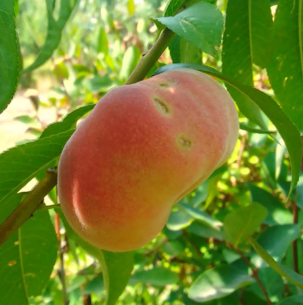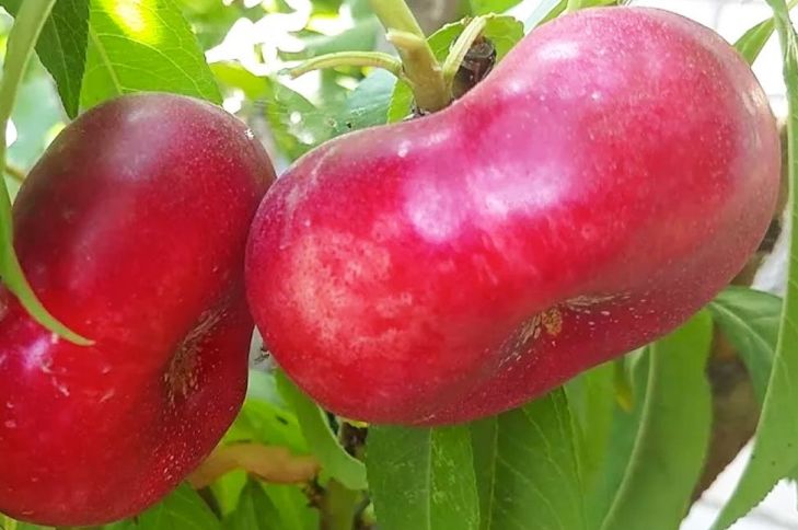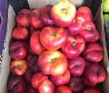 Нектарин Колоновидный Инжирный Донат Итальянская селекция. Дерево высотой 2-2,5 м. Урожайность (15-20 кг). Плоды массой до 120 г созревают в конце июля, приплюснутой формы с характерной бороздкой, ароматные. Кожица гладкая, бордовая. Мякоть мясистая, сочная, сладкая, но не приторная, светло-кремового цвета. Используется в свежем виде, варенье, десерты и выпечка. Лежкость 10 — 20 дней. Зимостойкость до -30.