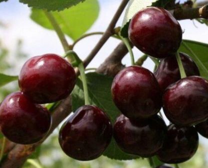 Вишня Жуковская. Дерево среднерослое — 2-3,5 м. Диаметр кроны — 2-3 м. Плоды крупные (до 6 — 7 г), овально-сердцевидные. Темно –красные. Мякоть плотная, сочная, темно-красная, с очень приятным кисловато-сладким вкусом, похожим на вкус черешни. Дегустационная оценка наивысшая — 5,0 баллов. Сок темный. Плодоносит на 3-4 год, урожайность около 15 кг. Созревает в середине июля. Сорт зимостоек, самобесплоден.